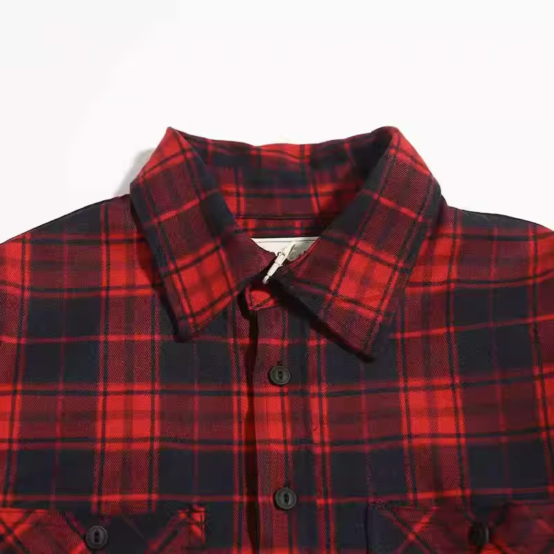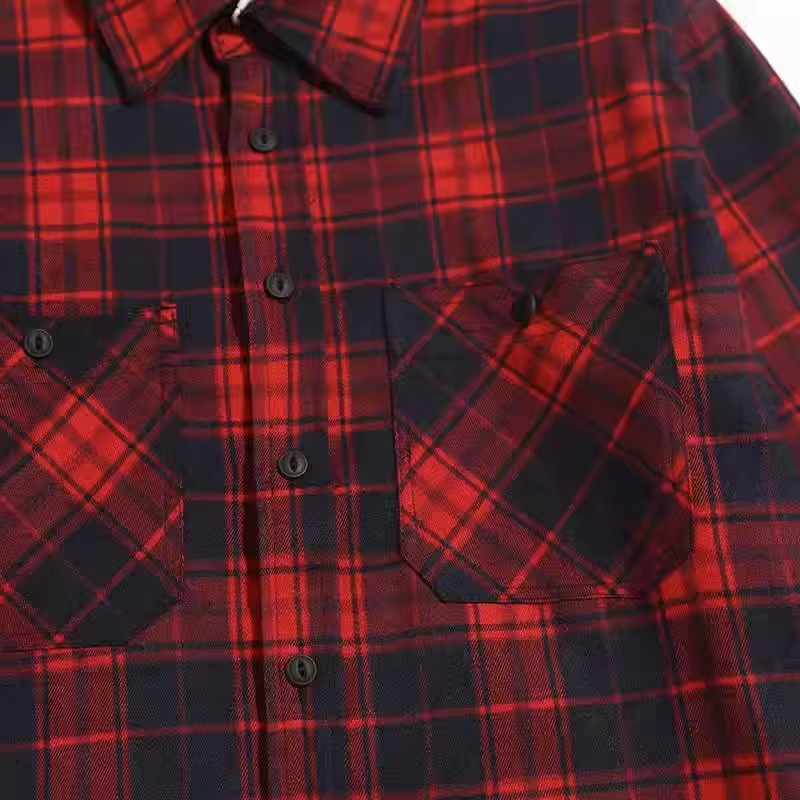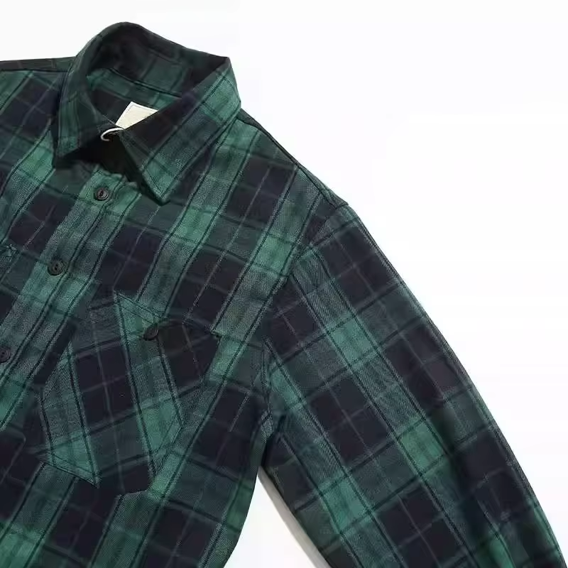 Autumn Loose Long-Sleeved Cotton Plaid Shirt Striped Thick Shirt