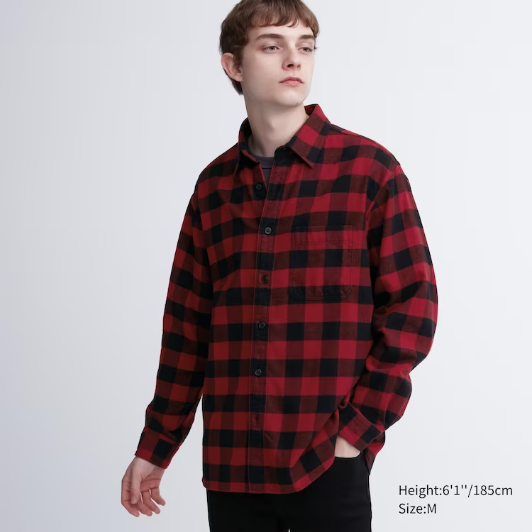 Flannel shirt with a thick yet airy feel. Brushed on both sides for extra warmth.