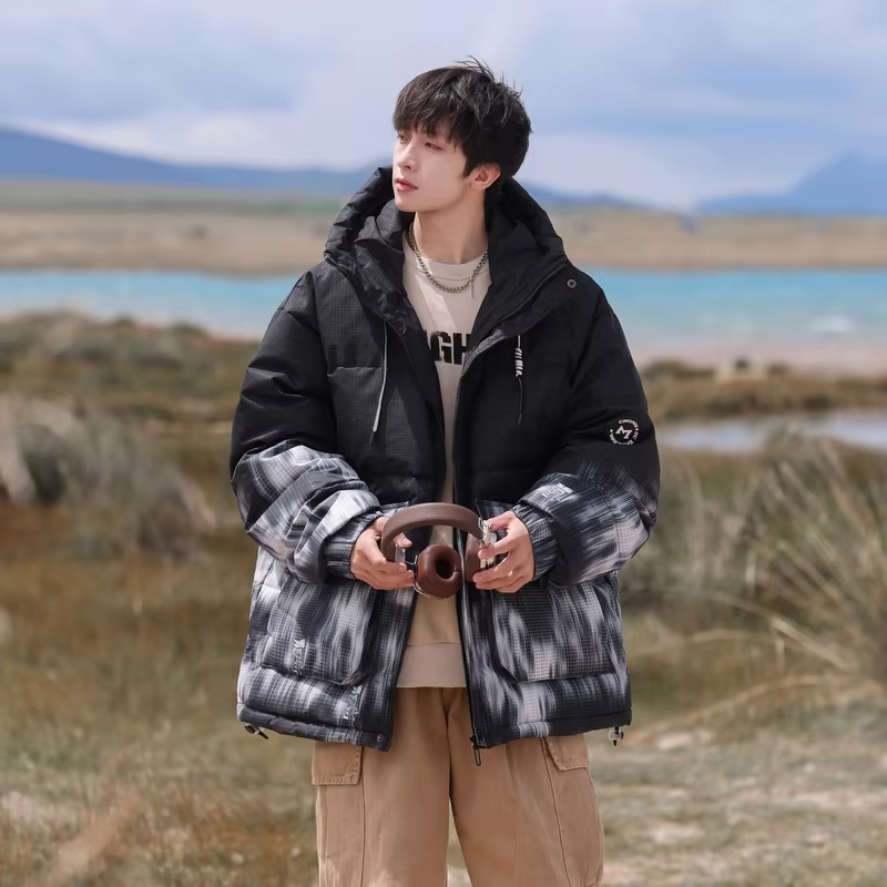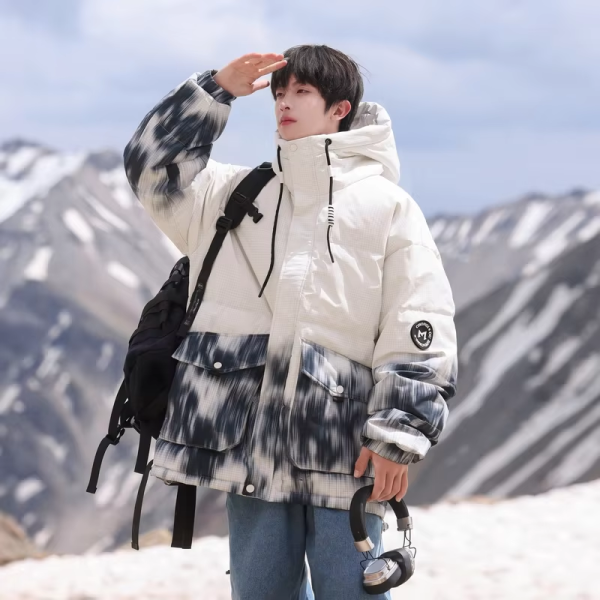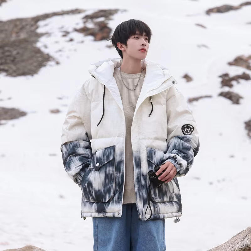 Be the first to review “Hooded Print Contrast White Duck Down Winter Puffer Jacket”