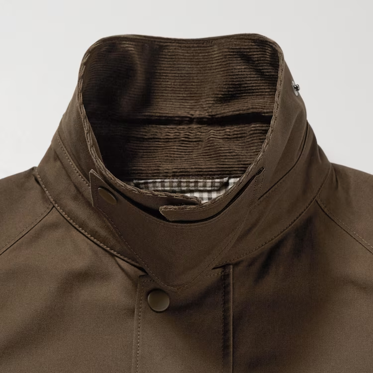 Care_Guide:Corduroy collar and checked lining accents. Raglan sleeves for a relaxed fit.