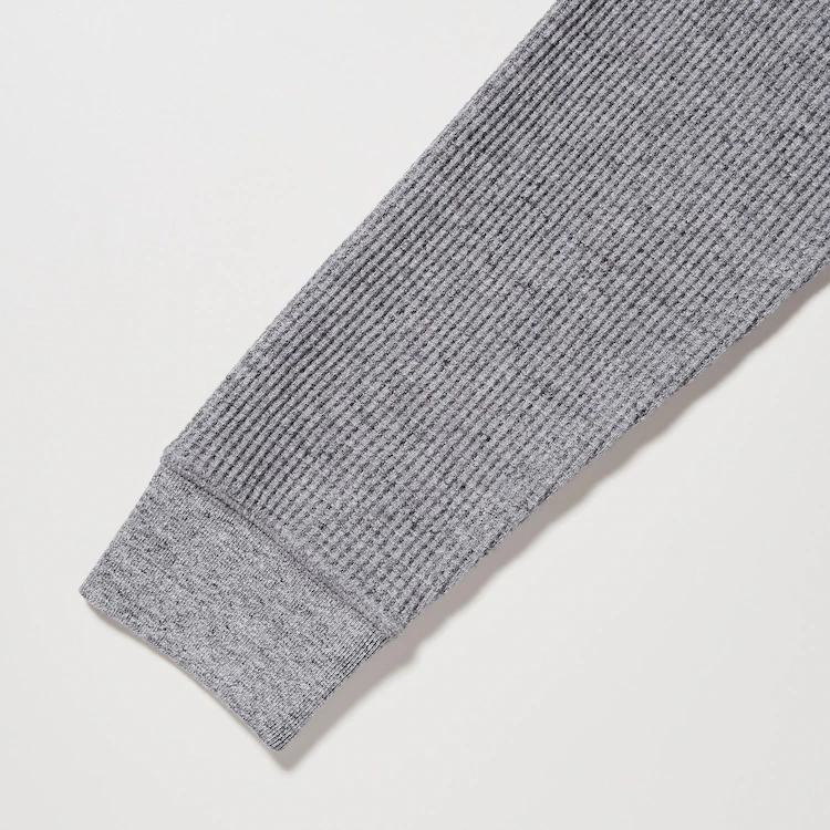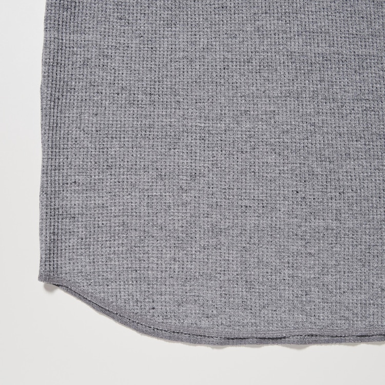 Soft waffle fabric with a thick, contoured feel. Adjust the buttons for a versatile, layered style.